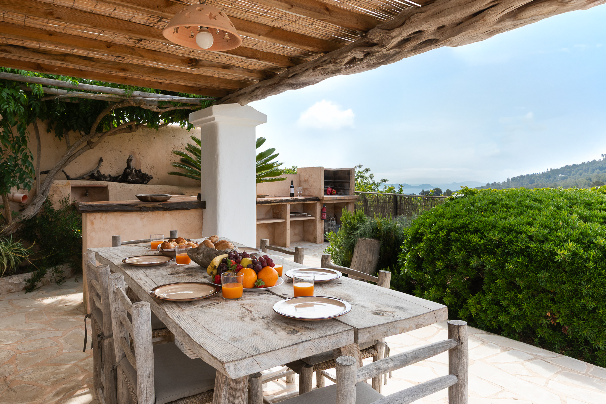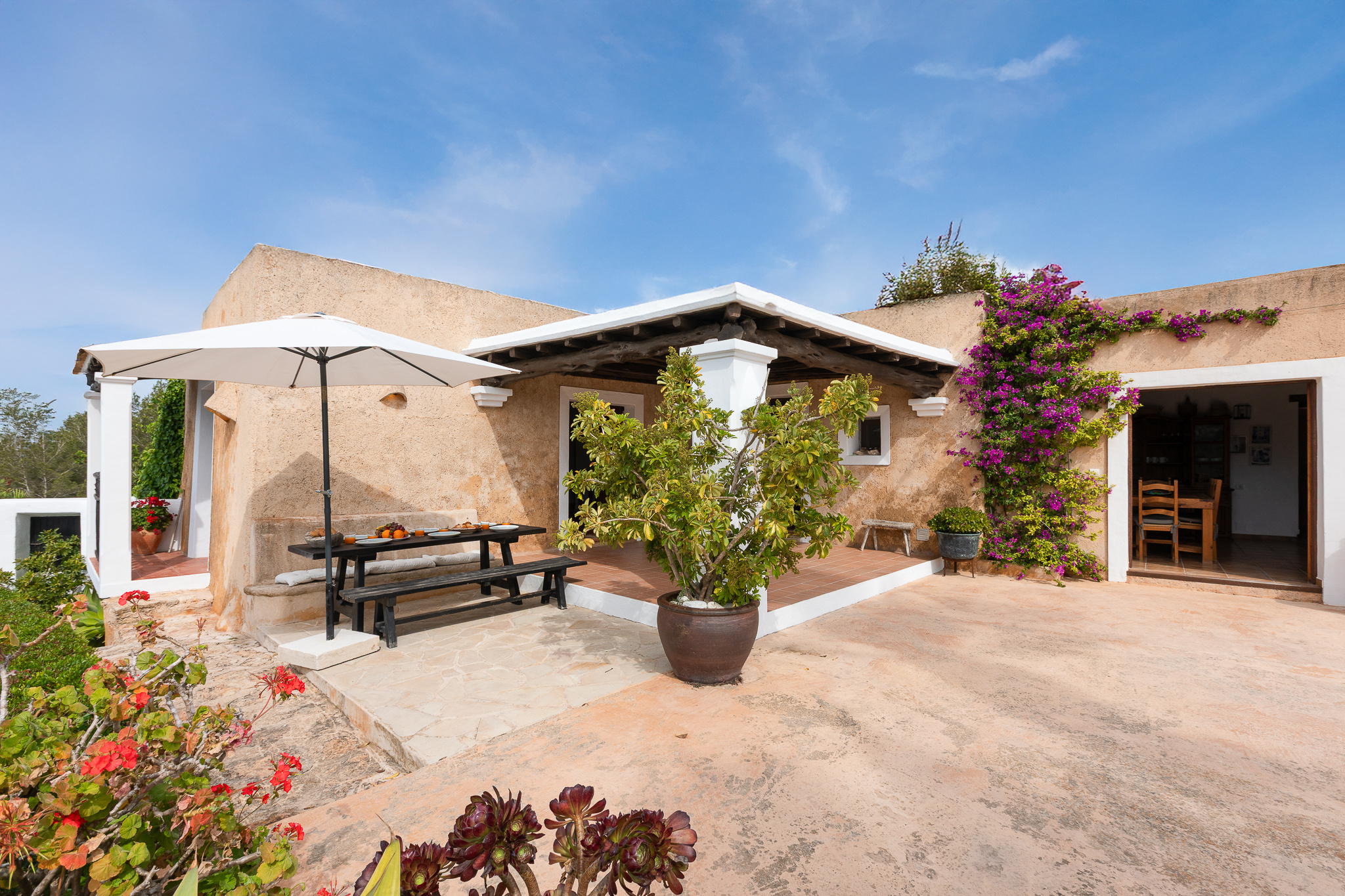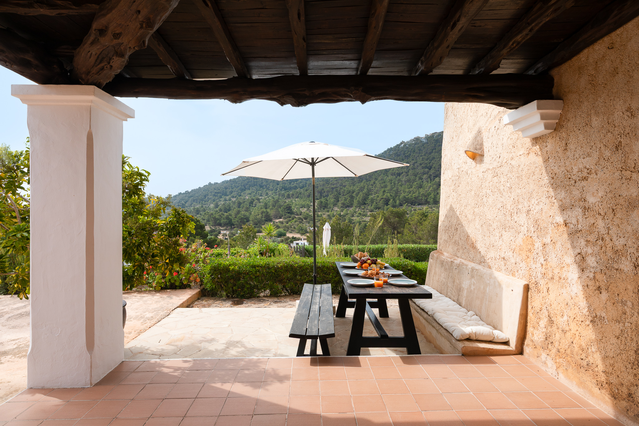 Villa Romero I is an elegant villa in Ibiza that blends contemporary design with Mediterranean charm, set in the stunning surroundings of Cala d’Hort on Ibiza’s west coast.