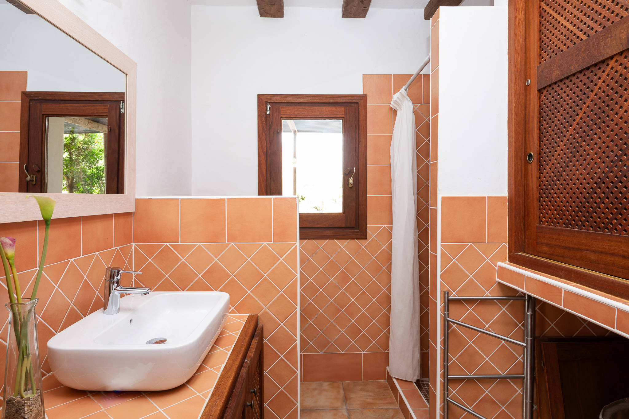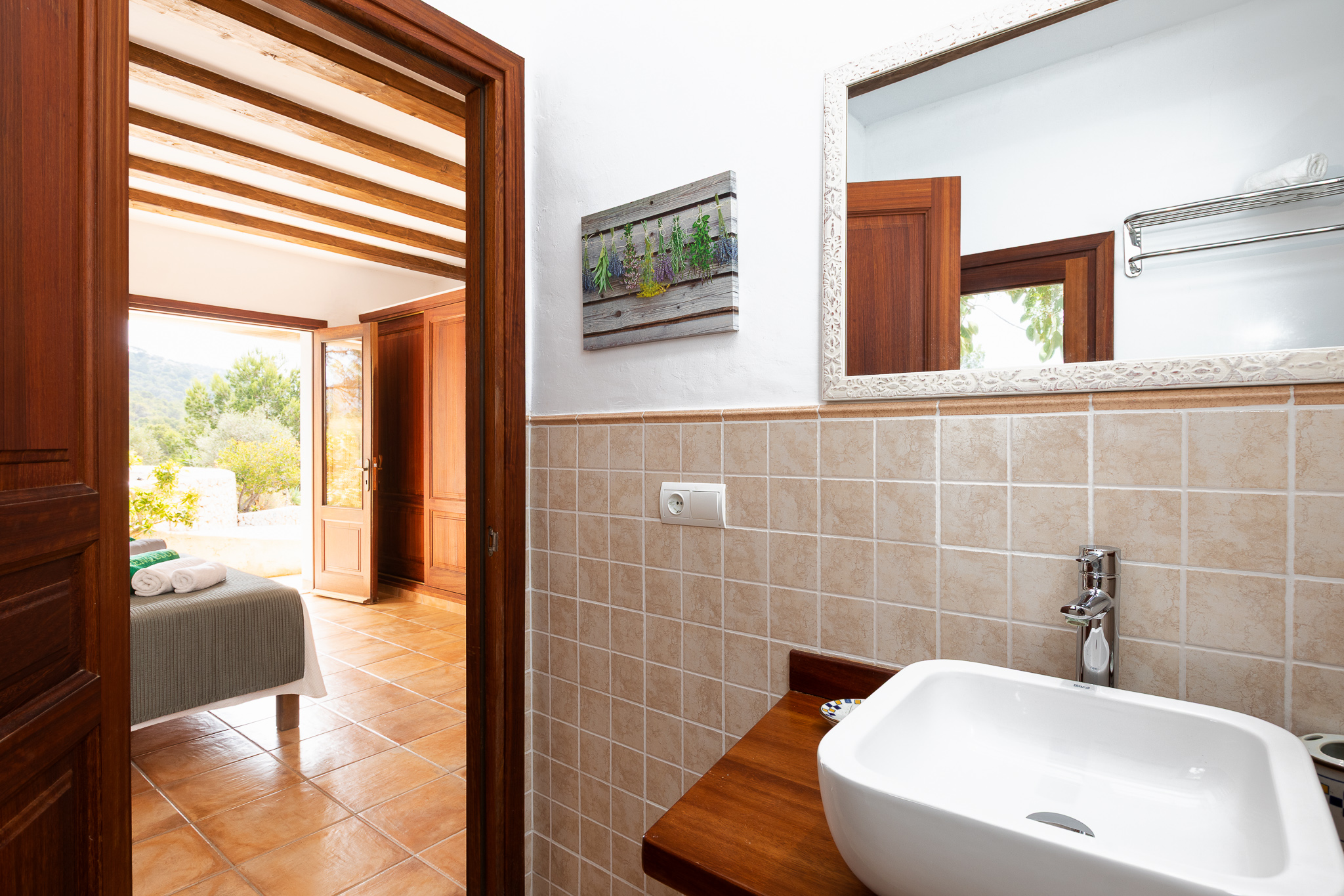 With three bedrooms and three full bathrooms, this holiday home in Ibiza offers both comfort and privacy. The interior spaces are spacious and bright, featuring a modern living room that connects seamlessly with a fully equipped kitchen.